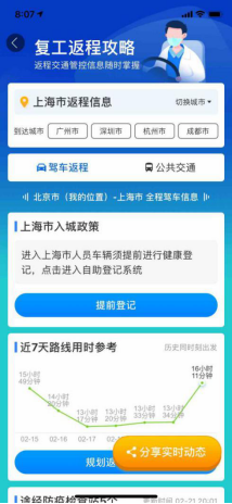 從數(shù)據(jù)看來(lái),各城市復(fù)工仍處于起步階段,仍有眾多打工者即將啟程返崗。為了讓這段返程復(fù)工之旅更安心、方便,百度地圖也于近日推出“復(fù)工返程攻略”,用戶可在百度地圖相關(guān)專題頁(yè)面獲得目的地和返程途中相關(guān)管制信息,以便及時(shí)調(diào)整、安排行程計(jì)劃。駕車返程的用戶可以使用百度地圖“復(fù)工返程攻略”在線完成入境登記,并查看途徑檢查站信息,了解檢查站的排隊(duì)長(zhǎng)度和通過耗時(shí);“行程用時(shí)參考”一欄將返程道路的擁堵情況一目了然的展示出來(lái),幫助用戶合理安排出發(fā)時(shí)間、規(guī)劃路線,提升入境通過效率,并為用戶實(shí)時(shí)更新沿途城市的疫情動(dòng)態(tài)等。對(duì)于乘坐公共交通出行的用戶來(lái)說,可通過百度地圖查看鐵路、城際、公交的停運(yùn)信息,而北京地區(qū)的用戶,還可通過百度地圖和北京市交通委推出的地鐵客流量查詢服務(wù),查看自己即將乘坐的地鐵線路客流量,減少出行風(fēng)險(xiǎn)。