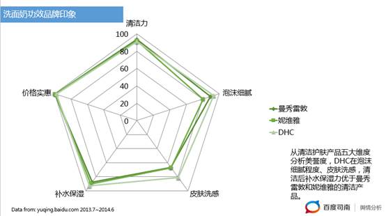 洗面奶:從清潔護膚產(chǎn)品五大維度分析美譽度,DHC在泡沫細(xì)膩程度、皮膚洗感,清潔后補水保濕力優(yōu)于曼秀雷敦和妮維雅的清潔產(chǎn)品。