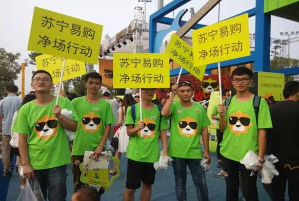 據(jù)悉,作為本次音樂季活動(dòng)的冠名方和組織方之一,早在9月初開學(xué)時(shí),蘇寧易購就進(jìn)入南京各大高校招募志愿者。這些志愿者不僅承擔(dān)著維護(hù)現(xiàn)場秩序,指導(dǎo)樂迷互動(dòng)的角色,在演出過程中還要化身“綠色天使”,負(fù)責(zé) “凈場”行動(dòng)。
