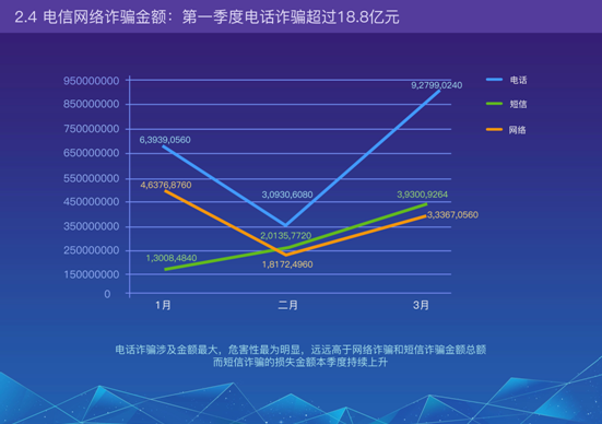 4、電信網(wǎng)絡詐騙損失金額——第一季度電話詐騙超過18.8億元