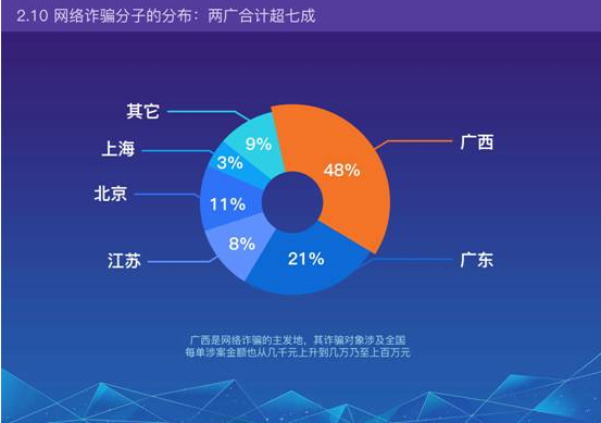10、網(wǎng)絡詐騙分子的分布——兩廣合計超七成