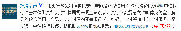 央行緊急叫停騰訊支付寶網(wǎng)絡(luò)虛擬信用卡