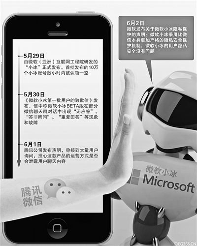 今年6月初,名為“小冰”的微軟智能聊天機(jī)器人上線數(shù)天之后遭到騰訊微信平臺(tái)的全面封停。騰訊方面表示接到大量用戶詢問(wèn),擔(dān)心這款產(chǎn)品的運(yùn)營(yíng)方式可能會(huì)泄露用戶聊天內(nèi)容。同時(shí)微信團(tuán)隊(duì)查證后發(fā)現(xiàn)該產(chǎn)品涉及模擬用戶操作、誘導(dǎo)用戶拉群、批量注冊(cè)垃圾賬號(hào)等影響平臺(tái)規(guī)則和用戶體驗(yàn)的違規(guī)行為。