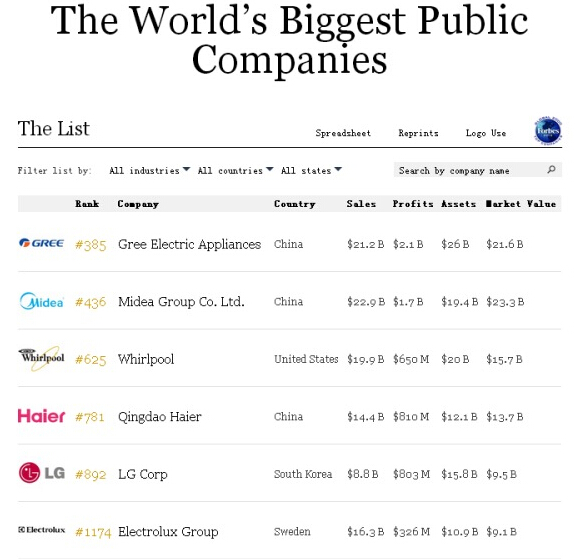 值得注意的是,在福布斯全球2000強的榜單分類中,格力電器排在全球家用電器類榜單第一名,品牌實力彰顯。