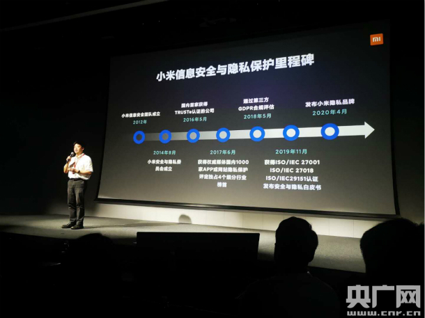 7月1日,小米集團(tuán)副總裁、集團(tuán)技術(shù)委員會(huì)主席、小米安全與隱私委員會(huì)主席崔寶秋在小米首屆安全與隱私宣傳月閉幕式上致辭。(央廣網(wǎng)記者梁爽 攝)