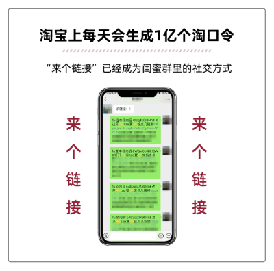 你知道嗎?每天淘寶上都會(huì)生成1億個(gè)淘口令,它們是閨蜜群里的話題焦點(diǎn)!皝(lái)個(gè)淘口令”是對(duì)于對(duì)方審美的最高贊美,由此也成為年輕人社交的重要方式,破冰示好、維系友誼,離不開(kāi)它。