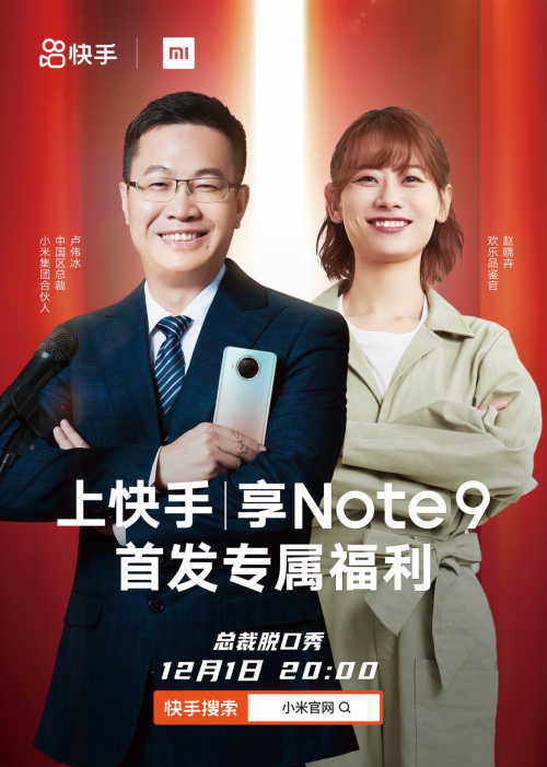 “老鐵一起走,我們整部Note 9”。12月1日晚8點(diǎn),小米中國區(qū)總裁盧偉冰搭檔脫口秀藝人趙曉卉、快手主播白小白,在“小米官網(wǎng)”直播間帶來“總裁脫口秀”直播首秀,并為快手老鐵帶來紅米Note9首發(fā)專享福利。