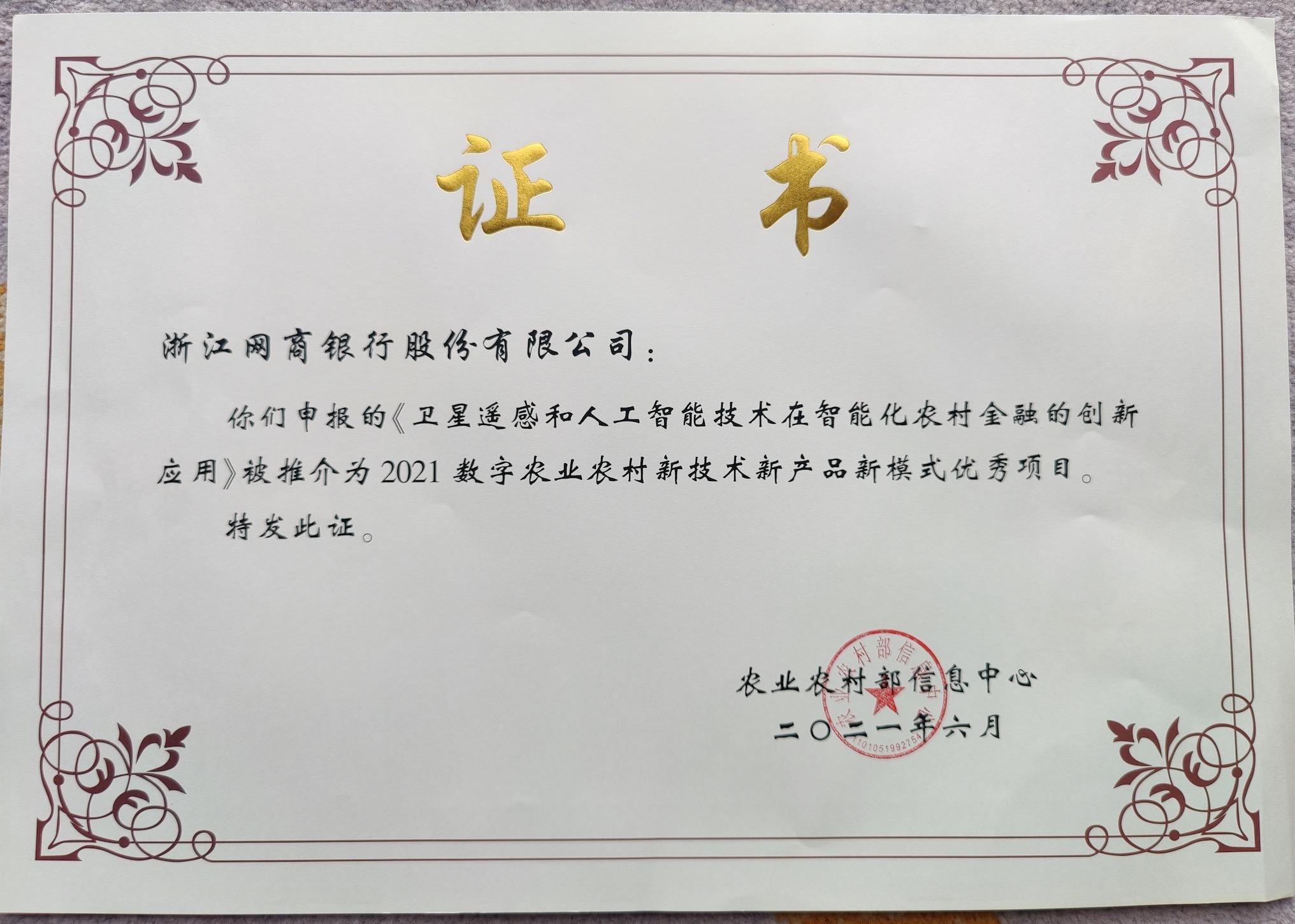 (圖:網(wǎng)商銀行“衛(wèi)星遙感信貸技術(shù)”入選農(nóng)業(yè)農(nóng)村部評選的優(yōu)秀案例)