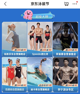 除了線下豐富多樣的活動外,京東運(yùn)動在線上也同步帶來了海量爆款和專屬福利。7月21日,京東運(yùn)動將繼續(xù)加碼泳裝品類福利,開啟線上大促活動,消費(fèi)者在當(dāng)天將可享受滿188減80的誘人福利,迪卡儂等品牌更是低至5折,專業(yè)運(yùn)動裝備、休閑玩趣用品應(yīng)有盡有。作為本次京東泳裝節(jié)的合作品牌,李寧將帶來男士游泳包豪華套組,泳褲、泳鏡、泳帽配齊僅需139元,一包在手下水無憂;速比濤也推出日本原裝進(jìn)口爆款泳鏡,具備高清防霧防水防紫外線大視野優(yōu)勢,任何水上運(yùn)動都能滿足,136元即可秒殺;此外,范德安推出的連體女士泳衣也登上爆款榜單,作為眾多明星青睞的高端女士泳衣品牌,遮肚、顯瘦、聚攏、防曬設(shè)計與輕薄面料質(zhì)感完美結(jié)合,成為女性消費(fèi)者的熱門選擇。