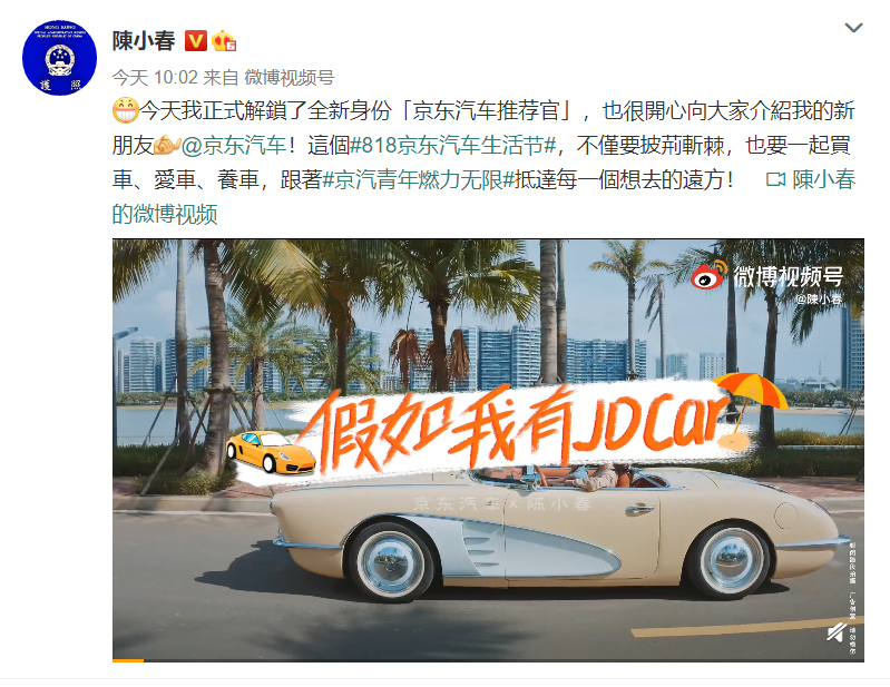 作為京東汽車推薦官,全能藝人陳小春不僅與粉絲們共度潮玩愛車季,更在主題MV《假如我有JD Car》實(shí)力出鏡,唱跳演繹讓眾多網(wǎng)友直呼“爺青回”。
