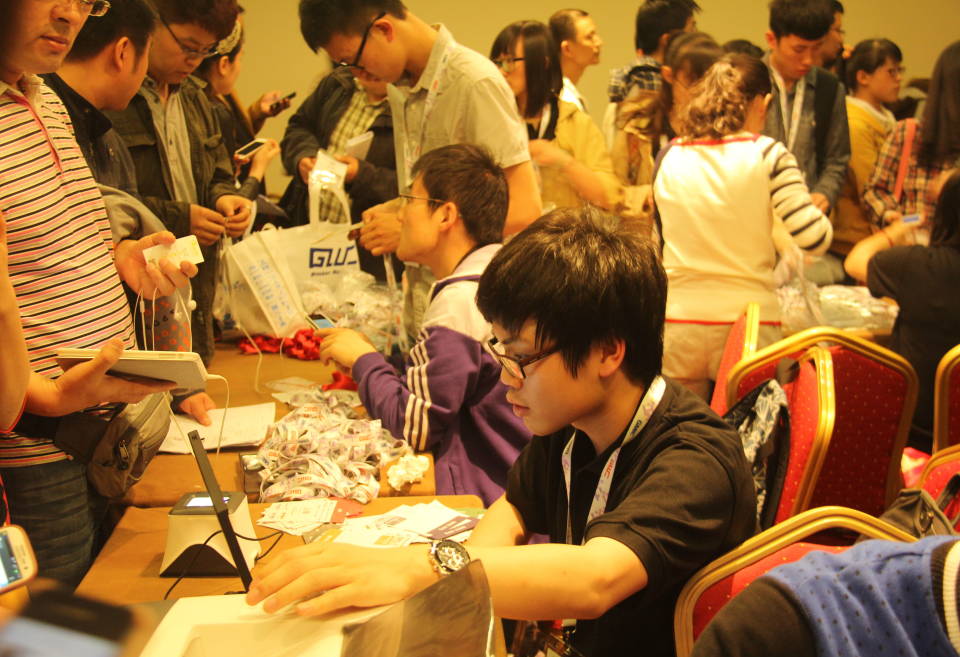 全球移動互聯(lián)網(wǎng)大會簽到中,工作人員使用二維碼進(jìn)行驗證