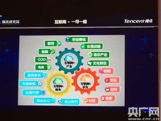 騰訊研究院首席研究員李剛在會議上發(fā)表騰訊大數(shù)據(jù)指數(shù)表明:互聯(lián)網(wǎng)+指數(shù)高的地區(qū)與一帶一路26個節(jié)點城市創(chuàng)新創(chuàng)業(yè)指數(shù)不謀而合,形成跨地區(qū)跨行業(yè)國際化標準,構(gòu)建云計算多地多終端互聯(lián)互通的服務體系,產(chǎn)生1+1>2的疊加增值效應。