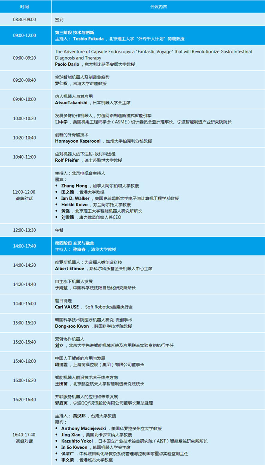 2016世界機器人大會共3天主論壇與22場專題論壇。邀請全球近300位機器人領(lǐng)域知名專家就機器人前沿科學(xué)研究、技術(shù)發(fā)展路線等問題開展學(xué)術(shù)交流和探討。