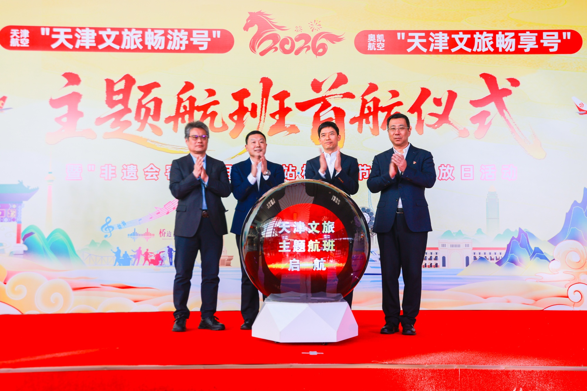 2月6日,“天津文旅暢游號(hào)”“天津文旅暢享號(hào)”主題航班成功首航儀式暨“非遺會(huì)客廳·相約航站樓”春節(jié)專場(chǎng)活動(dòng)舉行。