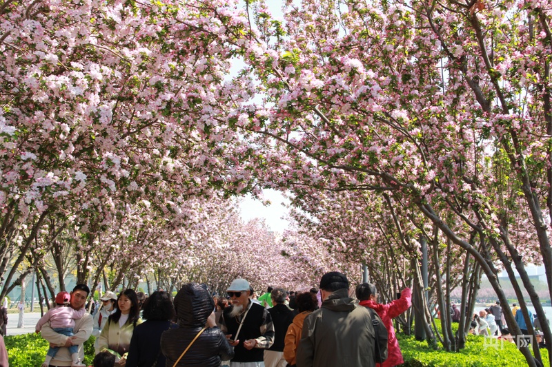 游客在海棠大道游玩(央廣網(wǎng)記者 褚夫晴 攝)