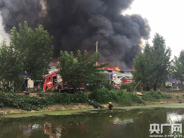 央廣網(wǎng)天津6月19日消息(記者 蘇平 劉陽)6月19日上午,天津小南河附近廠房突發(fā)火情。記者10點(diǎn)半趕到現(xiàn)場(chǎng)后發(fā)現(xiàn),著火現(xiàn)場(chǎng)黑煙彌漫。據(jù)目擊者介紹,火災(zāi)大約于9點(diǎn)半發(fā)生,可能是輪胎起火引發(fā)。目前消防部門已調(diào)集10余輛消防車進(jìn)入現(xiàn)場(chǎng)滅火,為避免火情擴(kuò)散,工廠附近已戒嚴(yán)。目前傷亡情況不明。消防部門仍在緊急撲救中。