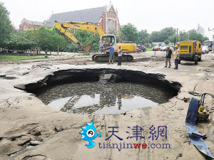 天津網(wǎng)訊 每日新報記者信華 王曾 前天晚上22:50左右,河?xùn)|區(qū)東興路與廣瑞路交口附近一條直徑1米的供水管道突然爆裂,強大的水壓導(dǎo)致爆管處地面局部塌陷,形成一個直徑約10米、深度將近2米的大水坑。