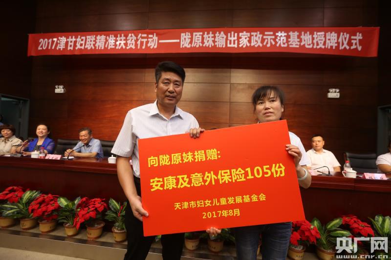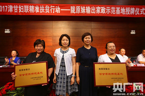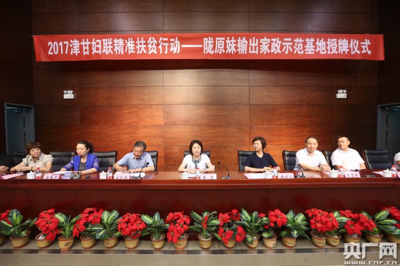 8月25日,天津市婦聯(lián)和甘肅省婦聯(lián)共同舉辦“2017津甘婦聯(lián)精準(zhǔn)扶貧行動—隴原妹輸出家政示范基地授牌儀式”活動,此次活動首度引入200名隴原妹進(jìn)入天津通過統(tǒng)一培訓(xùn)后統(tǒng)一上崗工作,最后達(dá)到精準(zhǔn)扶貧。甘肅省婦聯(lián)主席周麗寧、甘肅省扶貧辦副主任宋友好、天津市婦聯(lián)主席戴蘊(yùn)出席活動并講話。