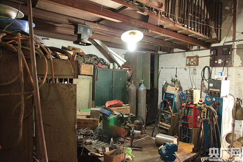 白津生的工作室在天津市河北區(qū)紅星路附近的小胡同里,整個(gè)工作間不足50平方米,許多電焊設(shè)備堆落在一起,從門口望去整面墻幾乎被各種外表陳舊的設(shè)備所覆蓋。