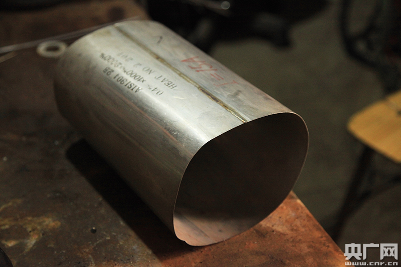 白津生制作的0.4毫米厚,像紙一樣薄的不銹鋼波紋管(劉陽(yáng)/攝)
