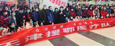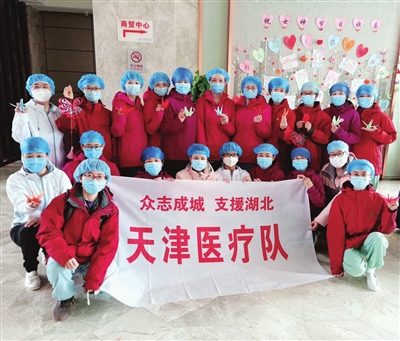 這一天,天津五隊(duì)四個班次接收了130名患者。治愈者秦女士說:“頭一天,醫(yī)護(hù)人員就客氣得不得了,叫我想哭,原先的恐懼感一夜跑光了!薄暗诙,又來了幾十個病友,很多人都是光桿子(意即沒帶任何東西)進(jìn)來的。醫(yī)生和護(hù)士把自己吃的喝的用的送給大家,我們哪里好意思收,他們就硬塞。”治愈者浦先生說:“‘天津’這兩個字,真是貼心貼背的親熱。等我能出門了,頭一件事就去看他們,給他們鞠躬作揖。”