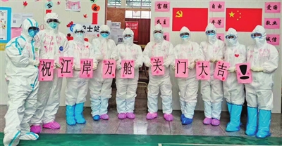 休艙當(dāng)天,江岸方艙醫(yī)院臨時黨委書記、武漢市江岸區(qū)區(qū)長祁琳對記者說,如果讓他擬一份頒獎詞,他一定會寫上:“天使逆行,以零為峰。津字招牌,名不虛傳!”