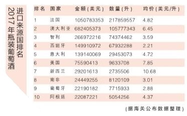 天津北方網(wǎng)訊:海關(guān)數(shù)據(jù)顯示,2017年,中國(guó)進(jìn)口葡萄酒總額約為27.89億美元,同比增長(zhǎng)約17.95%;總量約為7.46億升,同比增長(zhǎng)約16.88%;平均價(jià)格約為3.74美元/升,同比增長(zhǎng)0.91%。與此同時(shí),2017年國(guó)產(chǎn)葡萄酒產(chǎn)量下降了5%,為10億升。