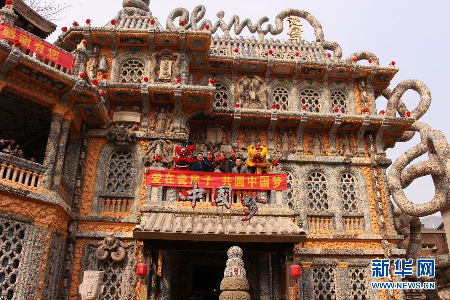 2月17日,天津市瓷房子博物館的三個(gè)大字“中國(guó)夢(mèng)”格外搶眼,據(jù)介紹,這是由216塊宋元時(shí)期的鈞瓷碎片精心制作而成的。2月17日,農(nóng)歷正月初二,津城迎來“不放鞭炮”的春節(jié),假期出游成了市民們更加健康的休閑方式。一大早天津市瓷房子博物館門前就排起了長(zhǎng)隊(duì),昨天是2018年開館首日,瓷房子準(zhǔn)備了精彩的舞獅表演給游客們送去新春的祝福。(新華網(wǎng)張博攝)
