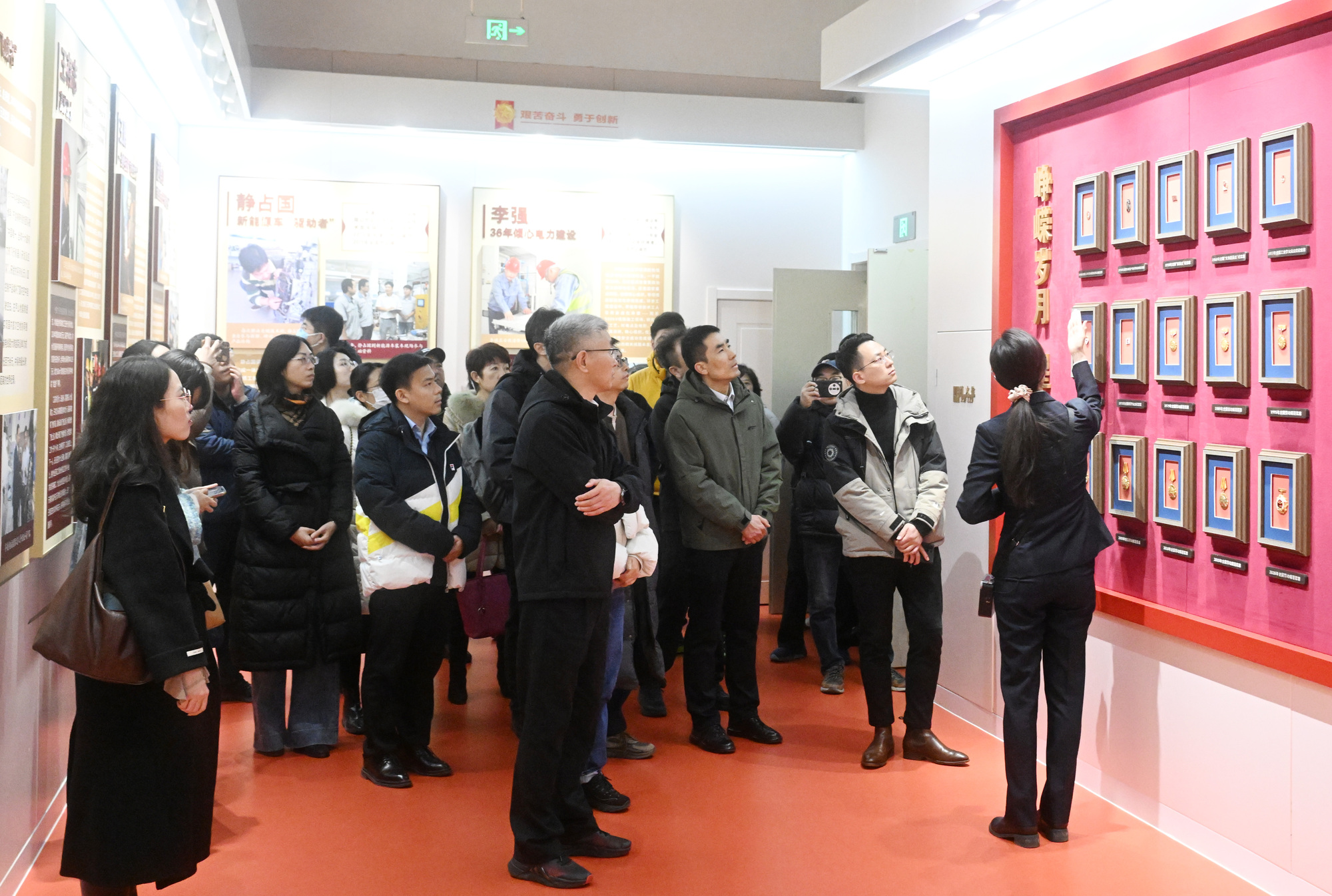 活動以“參觀見學(xué)+主題宣講”的方式舉辦。黨員干部職工代表在講解員的引導(dǎo)下,沉浸式參觀弘揚勞模精神勞動精神工匠精神教育展和天津工運史展,從宏觀層面深切感悟勞動者的崇高品格和奮斗精神。帶著“勞動創(chuàng)造幸!钡纳羁坦缠Q,來自國知局審協(xié)天津中心的全國先進(jìn)工作者譚雪,從自身通過專利審查護(hù)航科技創(chuàng)新的親身經(jīng)歷出發(fā),帶領(lǐng)黨員干部職工代表們聆聽了5位來自天津市經(jīng)濟(jì)社會發(fā)展一線的勞模、先進(jìn)工作者以“小切口”破解“大命題”的生動實踐。他們中既有“把大國重器牢牢掌握在自己手中,以算力賦能數(shù)字中國”的國家超級計算天津中心孟祥飛,又有“以創(chuàng)新之光照亮深藍(lán),帶領(lǐng)團(tuán)隊完成了‘8-2.5創(chuàng)造20000+’的節(jié)能奇跡”的天津港中煤華能煤碼頭有限公司段凱,既有“扎根鹽堿灘,為傳統(tǒng)能源產(chǎn)業(yè)注入智能化、綠色化新動能”的中國石油大港油田公司馮萌萌,又有“一年磨破5套工服,帶領(lǐng)團(tuán)隊攻克‘H型鋼厚板埋弧焊免清根’這一國際先進(jìn)工藝”的中建鋼構(gòu)天津有限公司李朋朋,還有“以車刀為筆,為大國重器鐫刻‘毫厘之間的中國精度’”的天津航天機電設(shè)備研究所李曉寶。