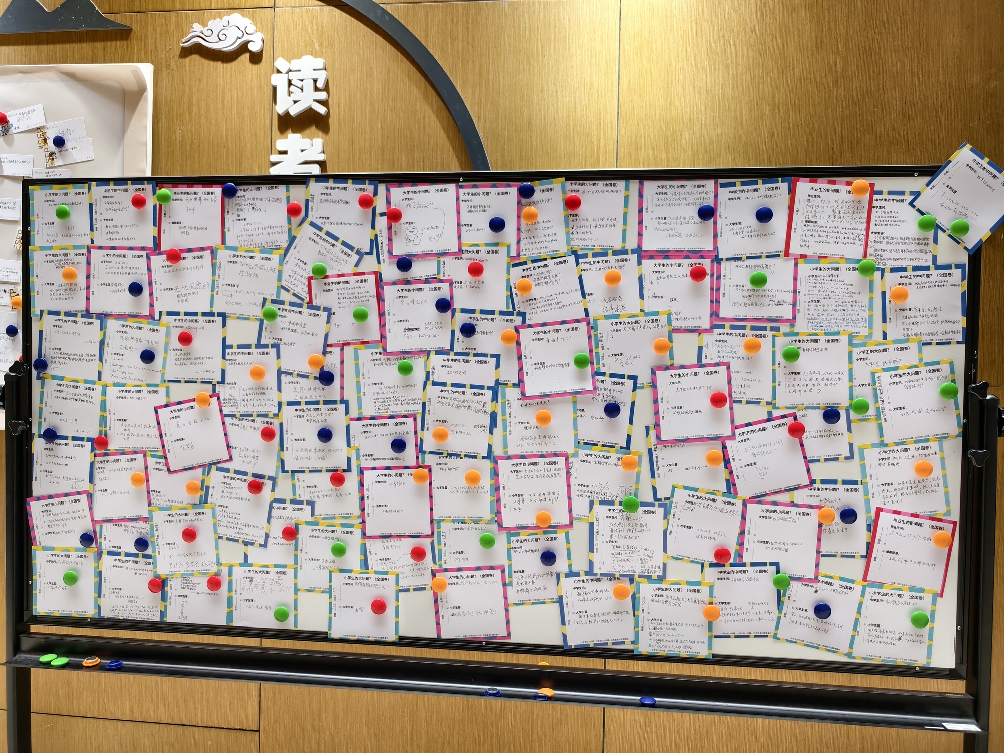 看板上,大學(xué)生寫困惑,小學(xué)生用童真作答;小學(xué)生提問題,大學(xué)生則報之以深刻思考;中學(xué)生學(xué)習(xí)遇到挫折,大學(xué)生給予溫暖鼓勵……在這樣的小卡片前駐足片刻,“大朋友”和“小朋友”都獲得了治愈和能量。