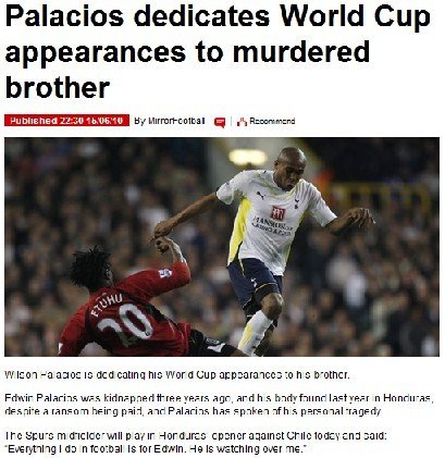 中廣網北京6月16日消息 北京時間6月16日上午,洪都拉斯中場大將威爾遜-帕拉西奧斯在接受《每日鏡報》采訪時動情地表示他將把自己的世界杯首秀獻給被謀殺的兄弟。