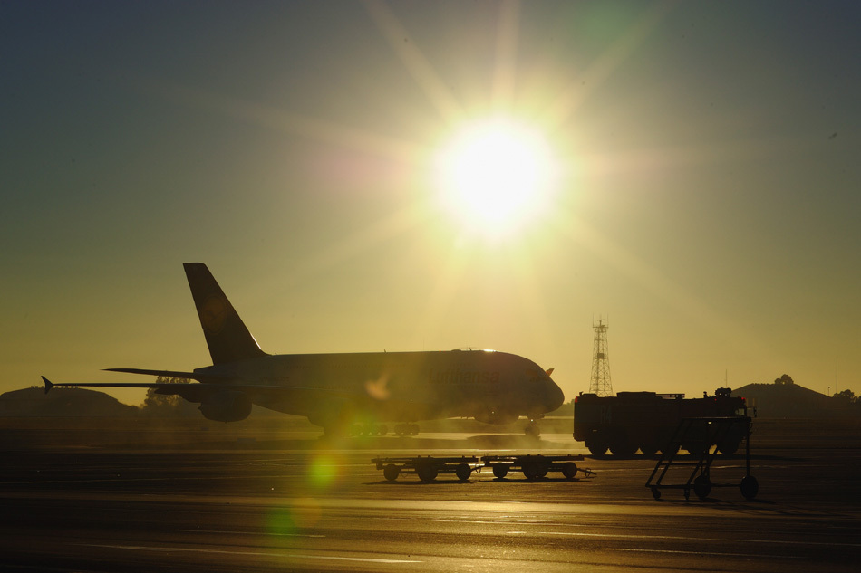 飛機伴著夕陽抵達