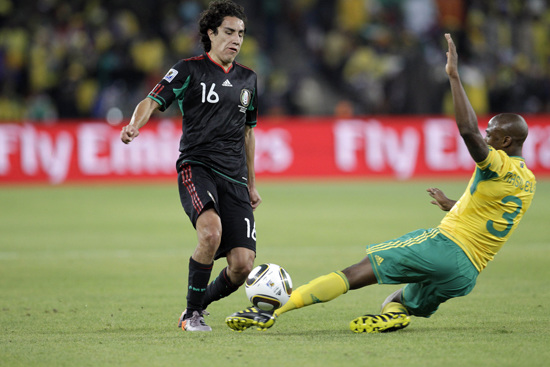 圖為墨西哥球員蘇亞雷斯帶球突破。