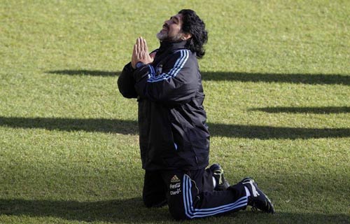 6月17日19:30,南非世界杯阿根廷隊(duì)將迎戰(zhàn)韓國(guó)隊(duì),目前阿根廷隊(duì)正積極訓(xùn)練備戰(zhàn)。在這場(chǎng)訓(xùn)練中,記者以調(diào)戲般的語(yǔ)氣對(duì)馬拉多納喊話(huà),結(jié)果馬拉多納雙膝跪地,以一個(gè)特殊的手勢(shì)進(jìn)行了回?fù)簟?/P>