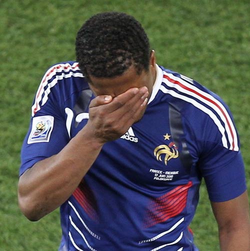 北京時間6月18日02:30(南非當(dāng)?shù)貢r間17日20:30),第19屆世界杯A組第二輪一場比賽在保羅瓜尼的莫卡巴球場球場展開爭奪,法國0比2負于墨西哥,巴薩后衛(wèi)阿比達爾造越位失敗,埃爾南德斯單刀打破僵局,隨后阿比達爾犯規(guī)送出點球,同樣替補出場的布蘭科擴大比分。