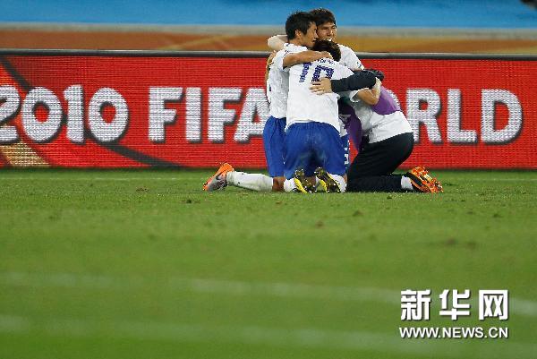 6月22日,韓國(guó)隊(duì)球員在比賽后激動(dòng)地抱在一起。當(dāng)日,在德班舉行的2010南非世界杯足球賽B組最后一輪比賽中,韓國(guó)隊(duì)以2比2戰(zhàn)平尼日利亞隊(duì),從而以三戰(zhàn)一勝一平一負(fù)最終積4分成功晉級(jí)16強(qiáng)。新華社記者廖宇杰攝