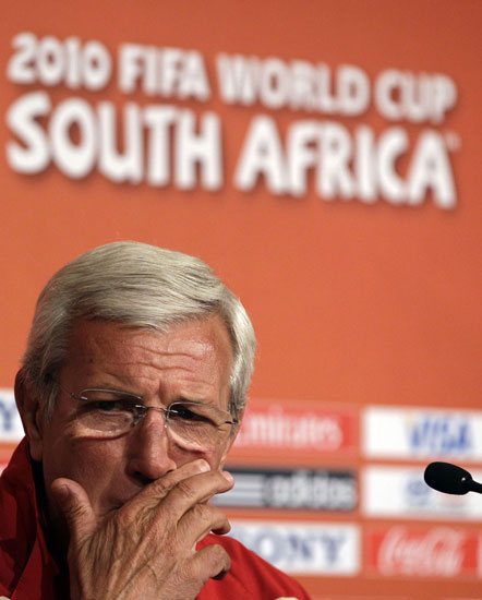 中廣網(wǎng)北京6月24日消息 南非當(dāng)?shù)貢r(shí)間6月22日,意大利國家隊(duì)在比勒陀利亞附近一體育場內(nèi)進(jìn)行備戰(zhàn)訓(xùn)練。24日,他們會(huì)迎來小組賽的下一個(gè)對手斯洛伐克隊(duì)。圖為主帥里皮若有所思。