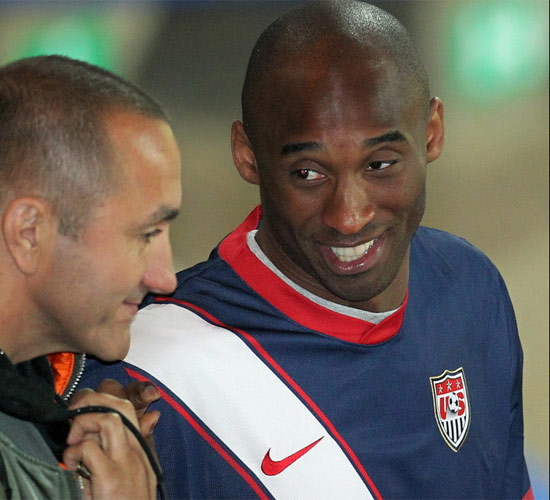 6月27日,世界杯1/8決賽第二場,美國對陣加納。NBA湖人隊球星科比-布萊恩特來到南非現(xiàn)場為美國隊助威,科比還特意身穿了美國男足的球衣。