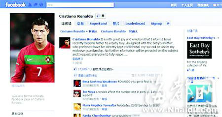 中廣網(wǎng)北京7月6日消息 幾乎是在沒有任何先兆的情況下,C。羅在facebook其官方主頁上向公眾宣布了他已經(jīng)成為父親的消息。