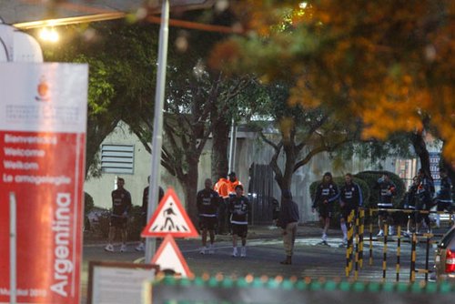 與昨天一樣,阿根廷隊(duì)今天的訓(xùn)練依舊不對(duì)外開(kāi)放。即便如此,大批阿根廷記者依舊守候在比勒托尼亞大學(xué)門(mén)口,他們架起攝像機(jī)和衛(wèi)星車(chē),不準(zhǔn)備放過(guò)任何蛛絲馬跡。據(jù)了解,老馬今天一共安排了兩次訓(xùn)練,上午是在力量房練力量,下午則是全隊(duì)隊(duì)內(nèi)訓(xùn)練賽。