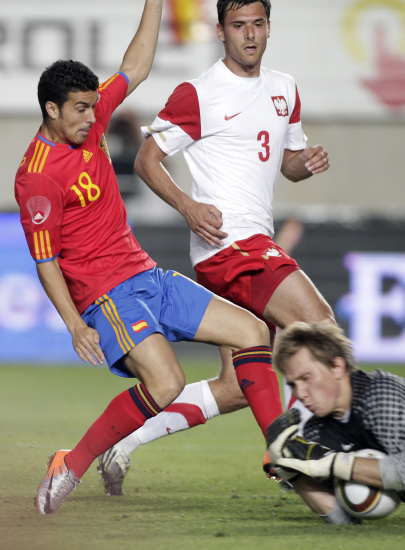 第82分鐘,佩德羅傳球,納瓦斯右路禁區(qū)邊緣的勁射被庫茨薩克撲出。隨后法布雷加斯開出角球,托雷斯遠(yuǎn)點(diǎn)14碼處頭球攻門被庫茨薩克沒收。第91分鐘,拉莫斯角球混戰(zhàn)中8碼處的射門被庫茨薩克神勇沒收。最終西班牙憑借出色表現(xiàn)6比0大勝波蘭。
