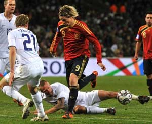 2008年歐洲杯,由于戰(zhàn)術需要,西班牙隊犧牲了托雷斯的機動性以掩護鋒線隊友比利亞。許多人認為金童表現(xiàn)“低迷”,更有媒體謠傳出他與主帥阿拉貢內(nèi)斯不和的消息。但在搭檔比利亞受傷錯過決賽的情況下,托雷斯絕殺德國隊,幫助西班牙問鼎歐洲冠軍。他與比利亞同時入選當屆杯賽的最佳陣容。