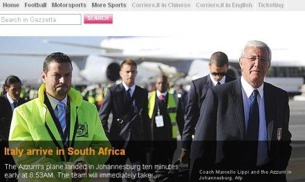 南非當(dāng)?shù)貢r(shí)間6月9日上午8:53分,意大利國家隊(duì)的乘坐著意大利航空公司的波音777客機(jī),提前10分鐘降落到約翰內(nèi)斯堡機(jī)場。國家隊(duì)主帥里皮精神飽滿的首先走下了飛機(jī),帶著自己的23名隊(duì)員,在南非特警的嚴(yán)密看護(hù)下,沒有接受任何采訪直接坐車前往酒店駐地。