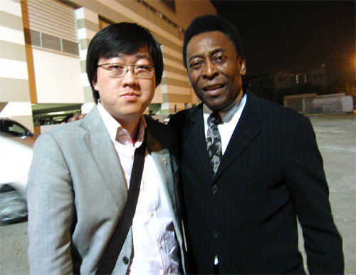 在南非當(dāng)?shù)貢r(shí)間6月9日晚上前往FIFA代表大會(huì)的開(kāi)幕式之前,我怎么也不會(huì)想到,我可以和貝利有單獨(dú)對(duì)話的機(jī)會(huì)。但事情就是如此湊巧, 在9日晚大約9點(diǎn)左右,F(xiàn)IFA代表大會(huì)的開(kāi)幕式剛剛結(jié)束之際,我利用和貝利在會(huì)展中心的停車場(chǎng)等車的間隙,對(duì)他進(jìn)行了一個(gè)簡(jiǎn)單的采訪。