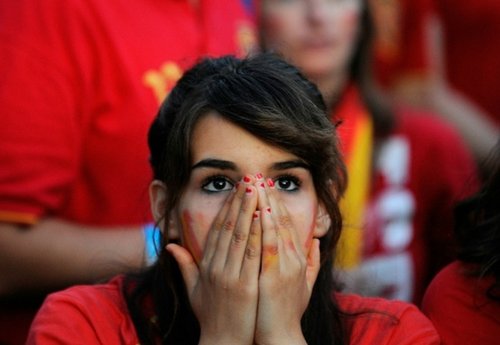 中廣網(wǎng)北京6月30日消息 北京時間2010年6月30日臨晨,世界杯1/8淘汰賽,西班牙1-0戰(zhàn)勝葡萄牙。圖為西班牙女球迷眼神讓人憐。