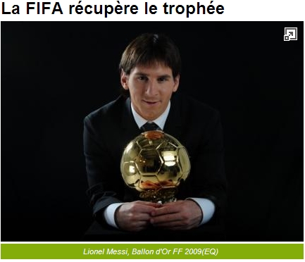 阿根廷球星梅西是目前兩項大獎的獲得者,但金球獎自1997年之后每到世界杯年都將該獎授予世界杯冠軍球隊的成員,而國際足聯也有同樣的慣例。