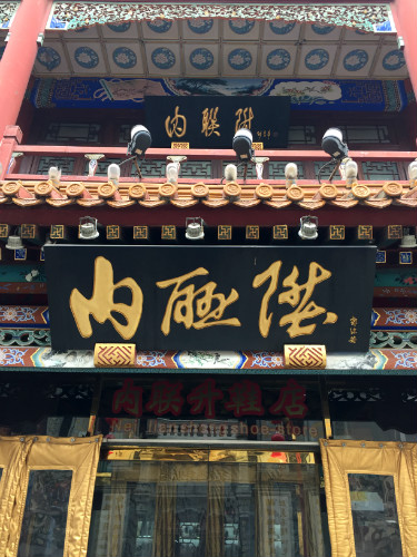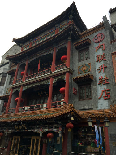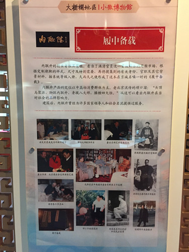 一樓進(jìn)門右邊是通往二樓的樓梯。上樓過程中,你可以看看墻上介紹內(nèi)聯(lián)升歷史的風(fēng)俗畫。