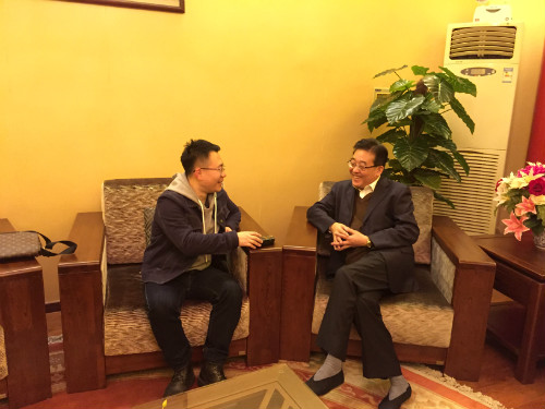 中央臺(tái)記者董浩(左)采訪內(nèi)聯(lián)升董事長程來祥