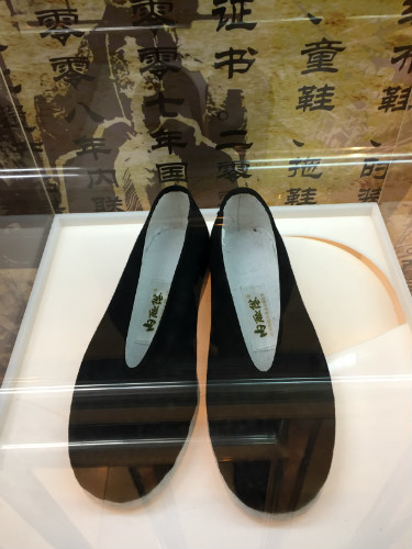 在這里,內(nèi)聯(lián)升的發(fā)展脈絡(luò)清晰地呈現(xiàn)在顧客面前——由原來單一的朝靴店,到后來逐漸增加品種,制作灑鞋、千層底布鞋等,如今又增加了女鞋和皮鞋。原本只走“貴族”路線的老店,經(jīng)營策略不斷調(diào)整,最終演變成了普通老百姓得以親近的品牌。