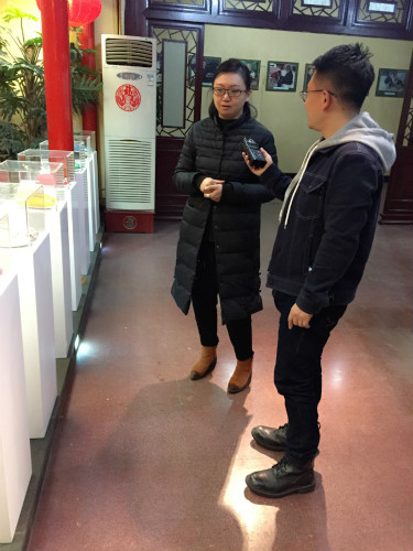 中央臺(tái)記者董浩采訪內(nèi)聯(lián)升設(shè)計(jì)師陳征(左)